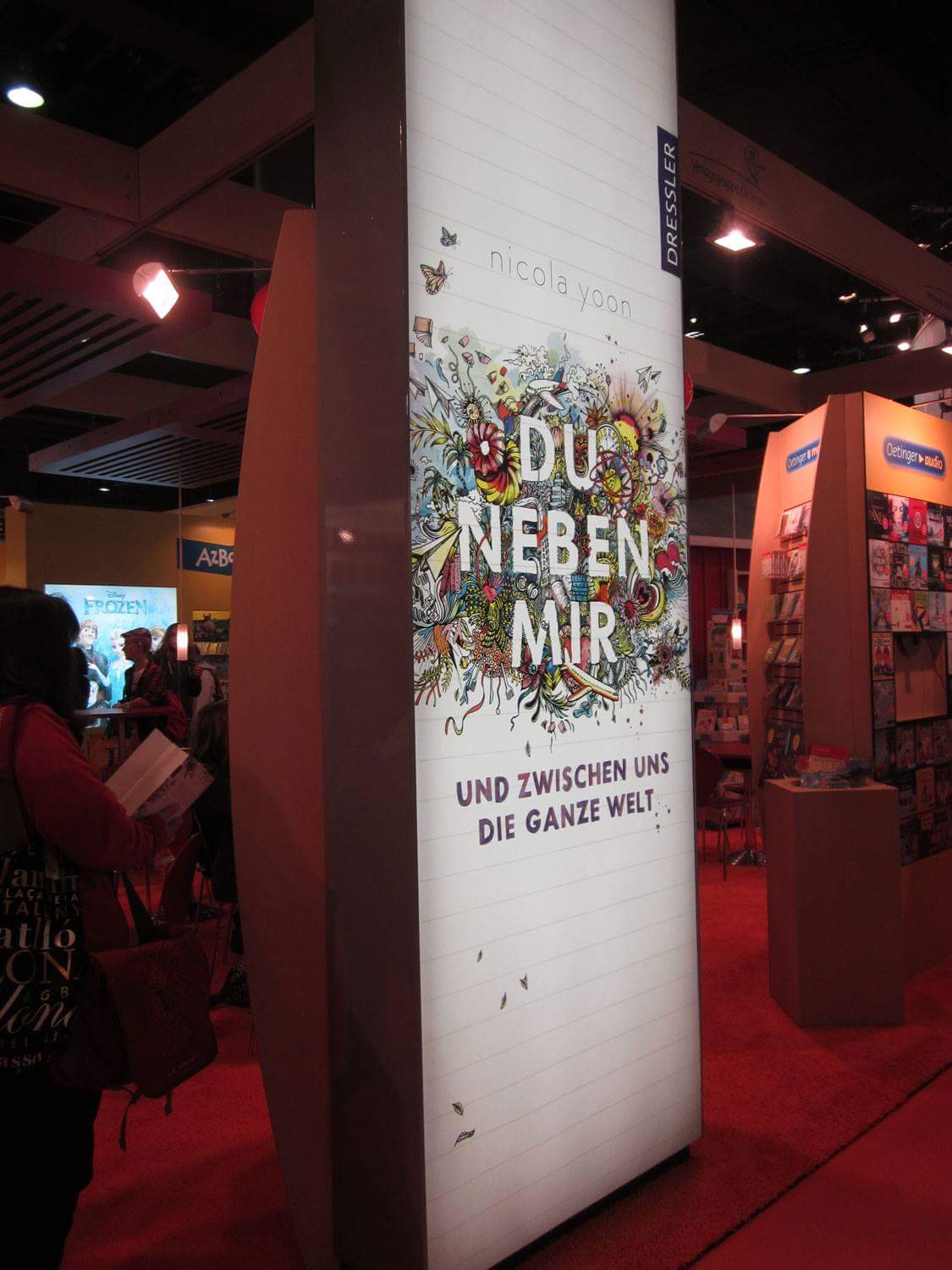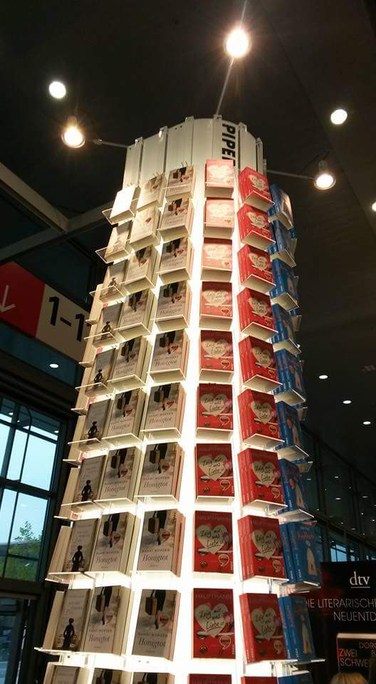 Irgendwo zwischen all den Ständen und Eindrücken sind wir dann auf eine riesen Wand des Buches „Maggie und die Stadt der Diebe“ von Patrick Hertweck gestoßen.